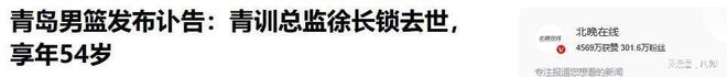 青岛国信海天篮球俱乐部随后发了讣告,说徐长锁的告别仪式定在 10 月 8 日上午 11 点,地点在济南市第二殡仪馆开阳厅。