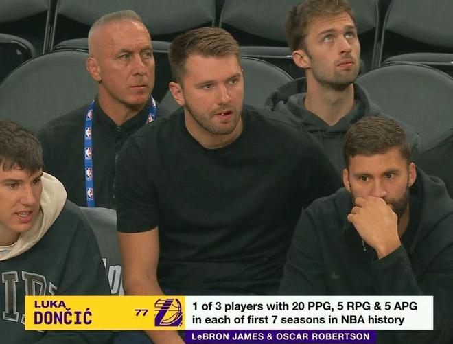 本场湖人缺少詹姆斯、东契奇、里夫斯、艾顿与斯马特等多位主力,东契奇场下观战无缘对阵旧主,独行侠缺少欧文、加福德与马丁等。